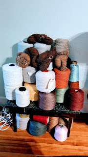 I’ve gone and done it this time! I went on a yarn shopping spree. When I was visiting one of my favorite thrift stores in the next town over (did I mention that I love antiques?) I found a guy whose job is to deliver cones of yarns to local yarn stores in bulk. He usually ends up with a lot of leftover yarn so decided to sell it to whoever happened to stop by.
