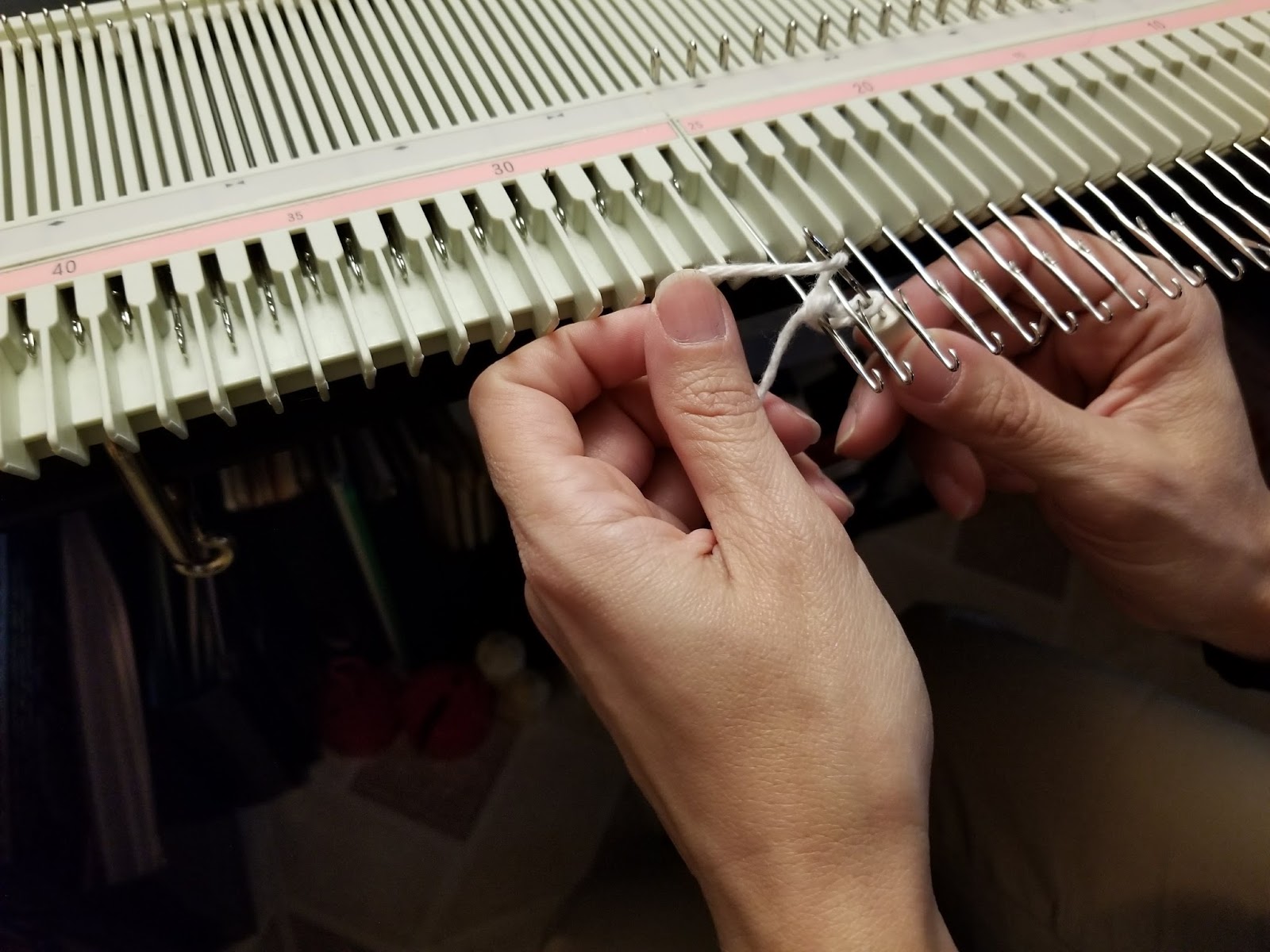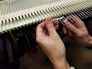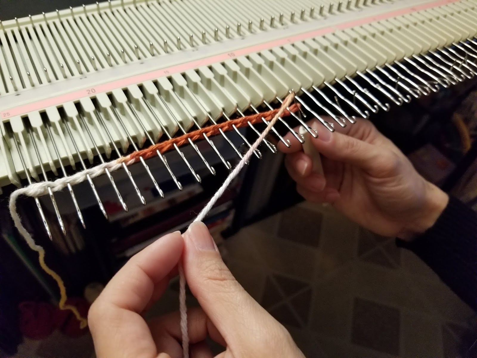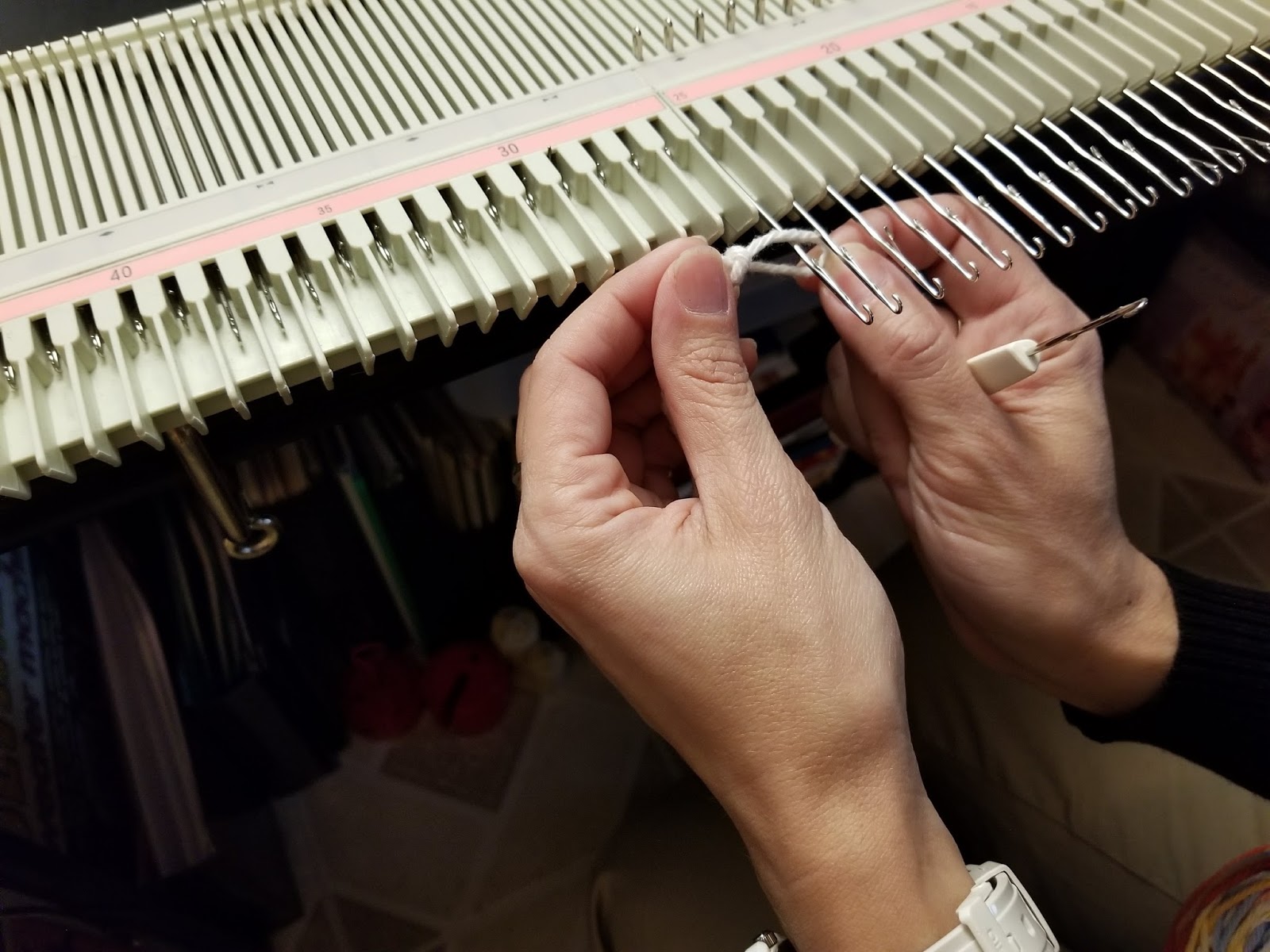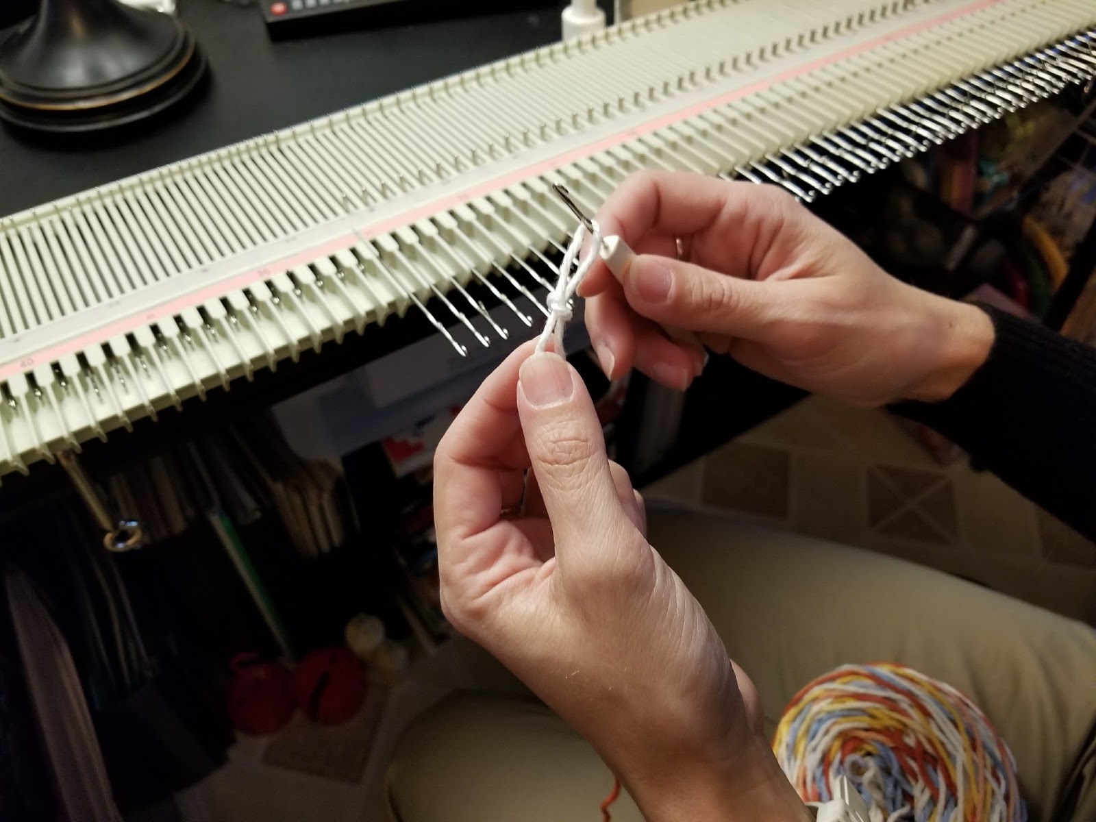 Yes, I know. I skipped one day again! Oh well, no worries because today I want to document the steps to make a dishcloth on a hobby knitting machine. I go through dishcloths so fast is not even funny, hence I decided to put my addiction to work for me.