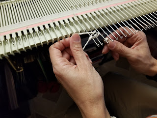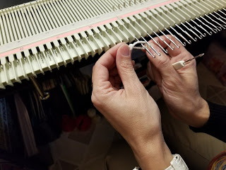 Hobby knitter (knitting machine) 9 mm gauge. In this case, I used a Brother KX-400 Convertible, plastic bed.